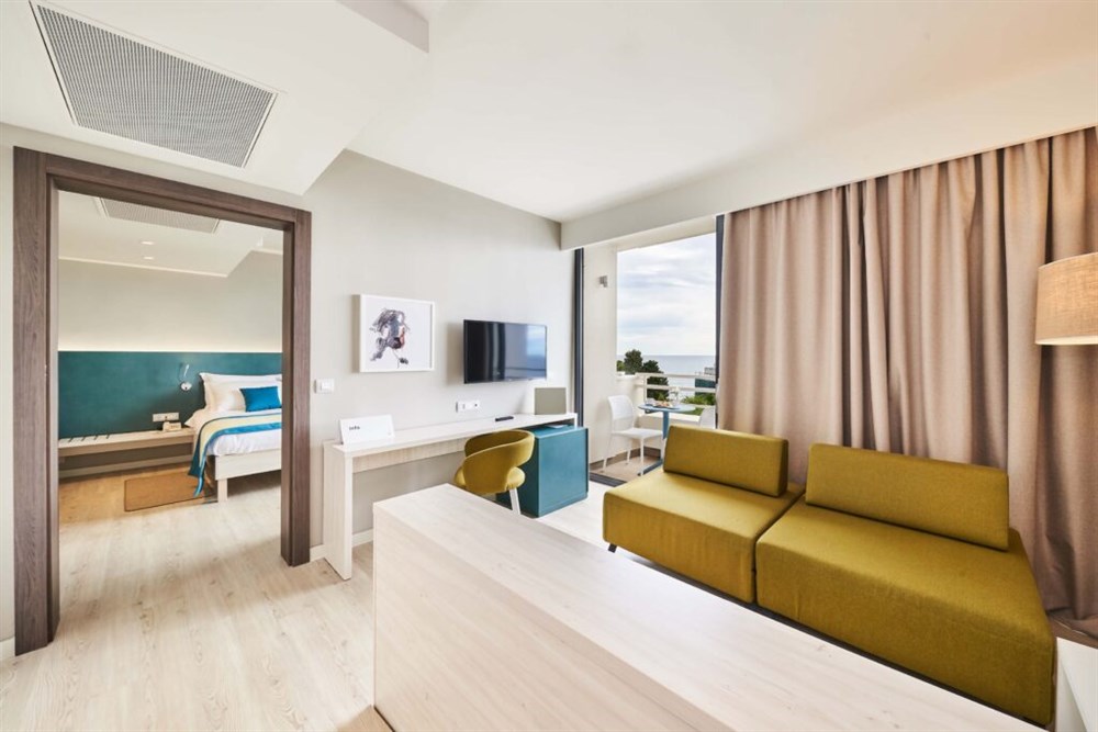 Pokoj Family s balkonem na moře (2+2 BSS FAMILY) – manželská postel nebo 2 oddělená lůžka, 2 rozkládací křesla (přistýlky), vlastní sociální zařízení (koupelna/WC/fén), sat.TV, telefon, klimatizace, minibar, trezor, Wi-Fi připojení, balkon. Výhled mořská strana. Dětská postýlka na vyžádání.