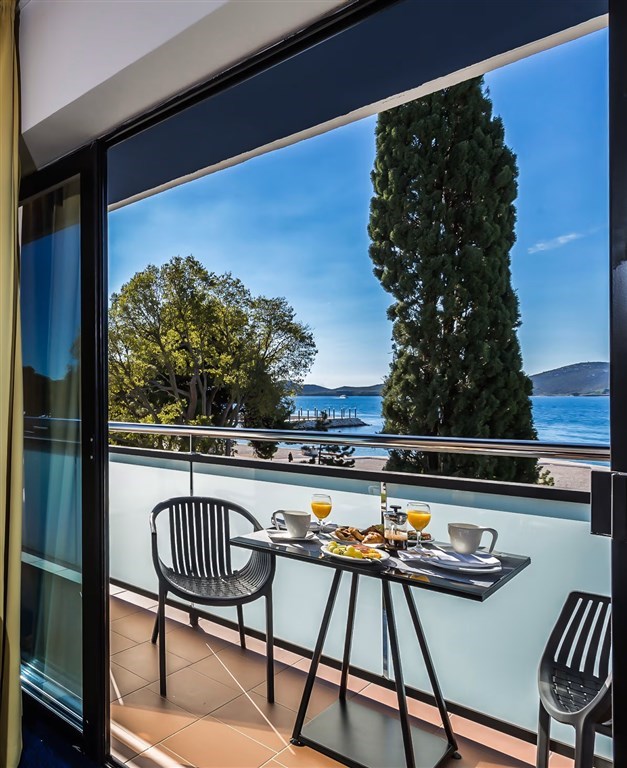 SUPERIOR DBL – dvoulůžkový pokoj s výhledem na moře, ostatní vybavení stejné jako u pokoje COMFORT.