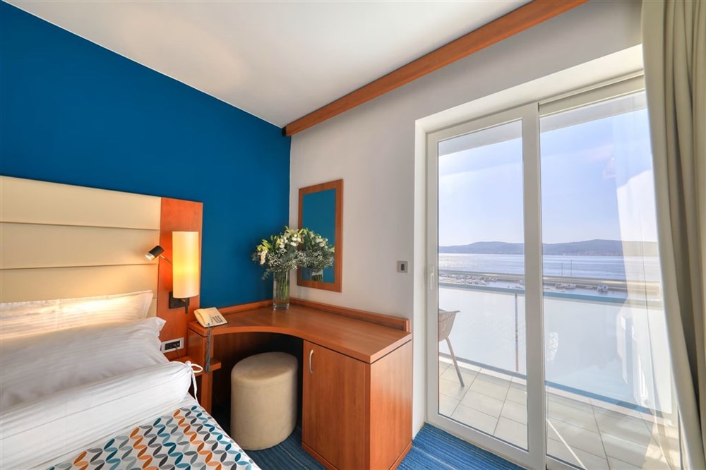 PREMIUM CLUB DBL – dvoulůžkový pokoj s výhledem na moře a VIP servisem, manželská postel nebo 2 oddělená lůžka,
