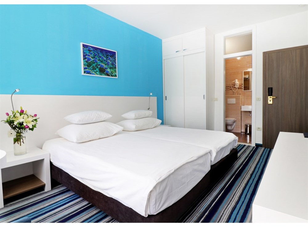 DBL COMFORT 2+1, kategorie 3* - standardní dvoulůžkový pokoj s možností jedné přistýlky. Za příplatek je možné si na recepci pronajmout trezor a ledničku 10 EUR/den (na vyžádání).