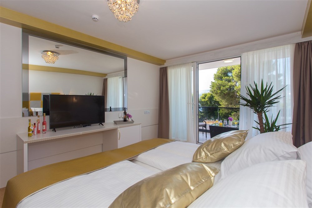 Hotel se nachází přímo u pláže, přibližně 3 km od centra Trogiru a 6 km od letiště Split, což z něj činí ideální místo pro objevování krás Dalmácie.