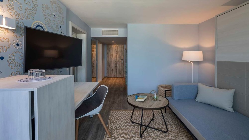 Family Superior s balkonem mořská strana (Family Superior Sea Side) – rodinný pokoj 2+2 s balkonem a výhledem směrem k moři.
