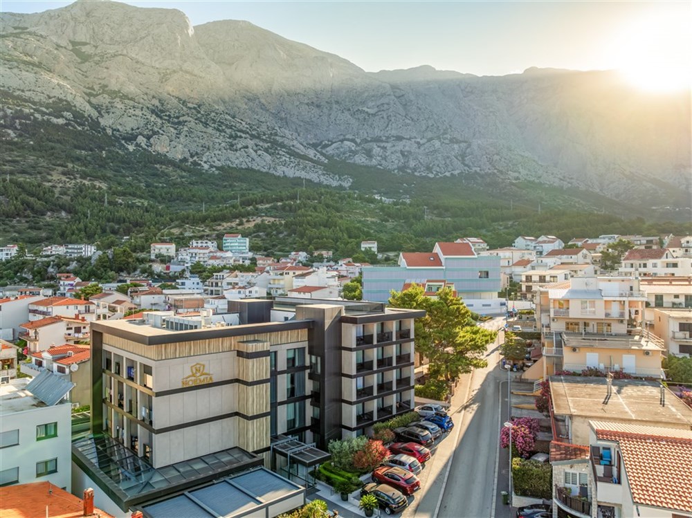 Boutique Hotel Noemia se nachází v oblíbeném letovisku Baška Voda na Makarské riviéře, přibližně 200 metrů od centra města a jen několik minut chůze od krásné oblázkové pláže. Moderní butikový hotel otevřený v roce 2020 nabízí elegantní ubytování, kvalitní služby a příjemnou atmosféru vhodnou pro páry i rodiny s dětmi. Baška Voda patří mezi nejvyhledávanější letoviska Makarské riviéry. Leží na úpatí pohoří Biokovo a nabízí kombinaci průzračného moře, upravených pláží, dlouhé pobřežní promenády a bohatého společenského života. V okolí naleznete množství restaurací, kaváren, barů i obchodů a ideální podmínky pro výlety do okolí.