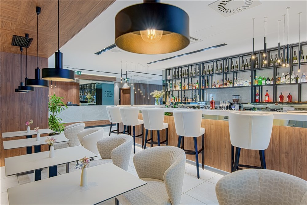 Vstupní hala s recepcí, výtah, restaurace, bar, terasa, venkovní bazén, vyhřívaný bazén s možností zastřešení, lehátka a slunečníky u bazénu zdarma (dle dostupnosti), wellness centrum (sauna, relaxační zóna, masáže), fitness centrum, Wi-Fi zdarma v celém hotelu.