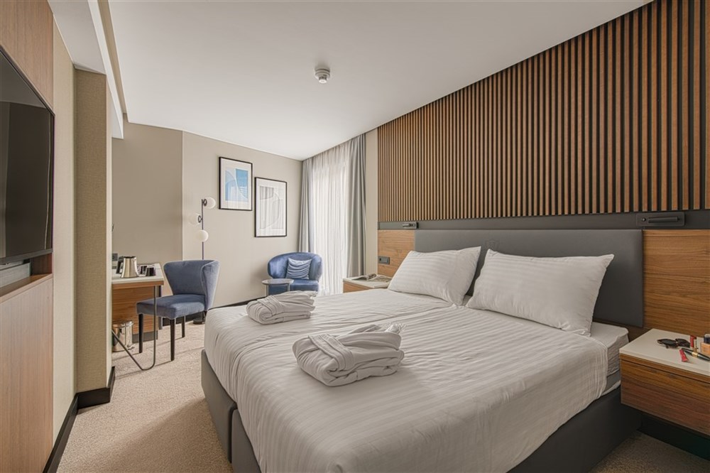 K základnímu vybavení pokoje patří manželská postel nebo dvě oddělená lůžka, vlastní sociální zařízení (koupelna/WC/fén), klimatizace, SAT/TV, telefon, minibar, bezpečnostní schránka, Wi-Fi připojení, set pro přípravu kávy a čaje. Dětská postýlka na vyžádání (za poplatek).