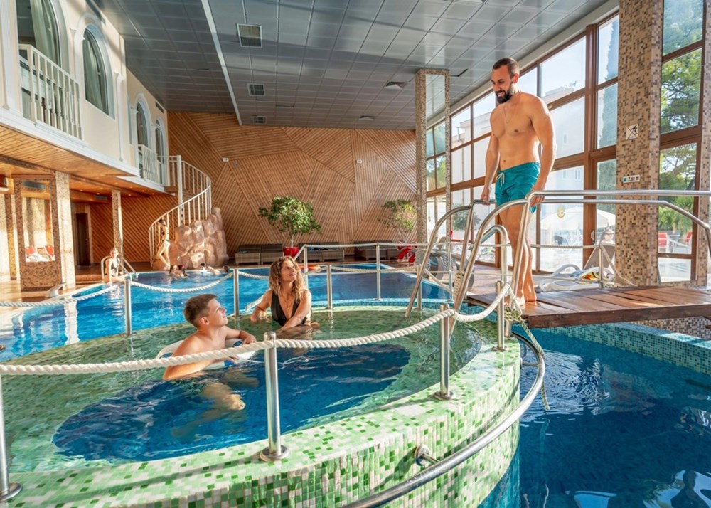 Vstupní hala s recepcí 24 hod., lobby, klimatizace, výtah, restaurace, à la carte restaurace, kavárna, lobby bar, bar u bazénu, terasa, venkovní bazén s mořskou vodou, vnitřní vyhřívaný bazén, lehátka a slunečníky u bazénu zdarma (dle dostupnosti), moderní wellness centrum (sauny, vířivka, Kneippův chodník, relax zóna, masáže), fitness centrum, Wi-Fi zdarma ve společných prostorách i na pokojích.