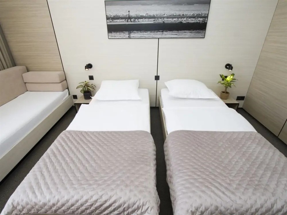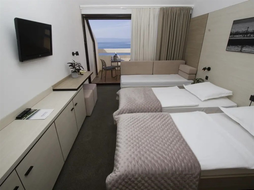 Dvoulůžkový pokoj Sea Side (DBL SV) – dvojlůžkový pokoj s možností jedné přistýlky, balkon. Výhled na mořskou stranu. Dětská postýlka na vyžádání za poplatek 7 €/den.