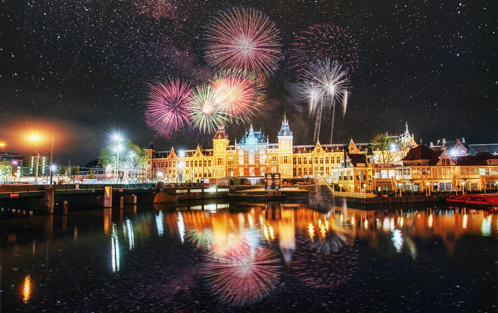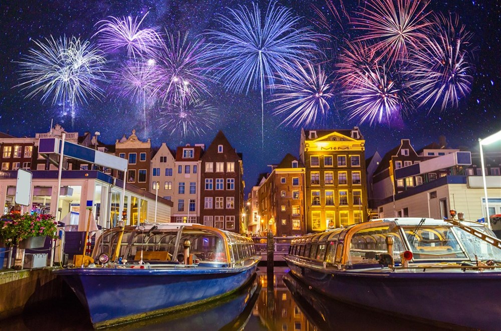 Pokud chcete oslavit konec roku a zažít silvestrovské oslavy, opravdu jak se patří, pojeďte s námi do Amsterdamu. Zažijete ohňostroj nad amsterdamskými kanály v období, kdy se koná festival světel. Zájemci se mohou zúčastnit podvečerní plavby po kanálech, navštívit místní kavárny, hospůdky a bary. Silvestrovské oslavy a veselí na vás čeká kdekoli v ulicích a věřte, že Nizozemci si umí oslavy pořádně užít. Svůj silvestrovský večer, můžete začít večeří v jedné z mnoha restaurací, které nabízejí speciální menu. Kuchyně různých etnik uspokojí chutě i rozpočty všech návštěvníků. K večeři jistě nebudou chybět tradiční holandské dezerty: oliebollen, koblihy pokryté moučkovým cukrem a appelflappen, jablečné lívanečky. Po celém městě také najdete kiosky nabízející tyto typické lahůdky ve dne i v noci. Na Museumplein je národní silvestrovská párty, televizní akce, které se účastní tisíce Nizozemců a cizinců. Pokud hledáte formálnější oslavu, Oosterdokis je tím pravým místem, zde se konají oficiální oslavy města. Přístavní čtvrť poskytuje kulisu pro ohňostroj, který se zde v Amsterdamu každoročně pořádá. Mnoho Nizozemců pak organizuje svůj ‚vlastní‘ ohňostroj na různých místech po městě.