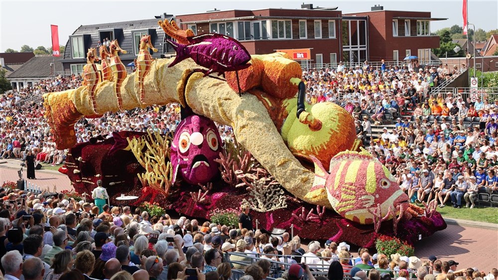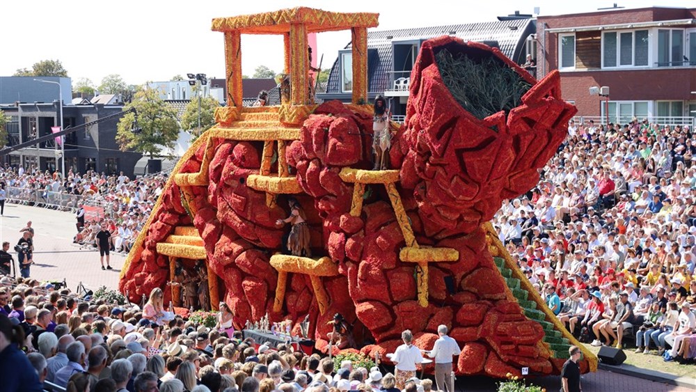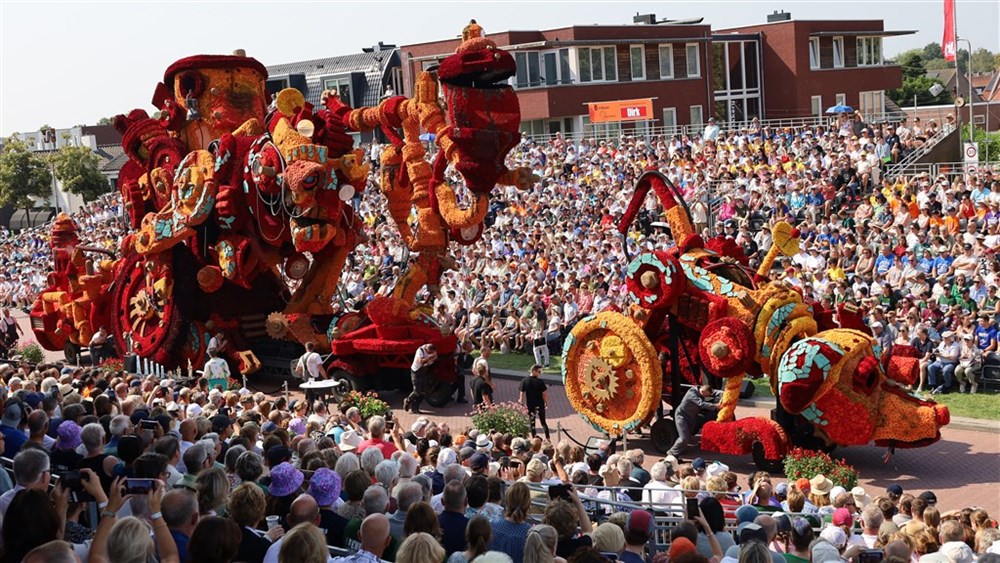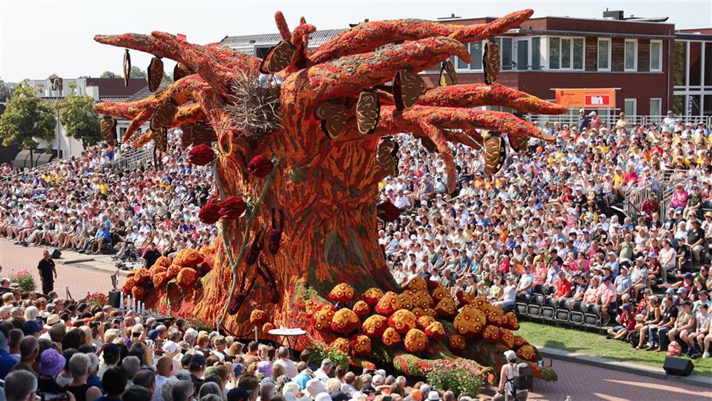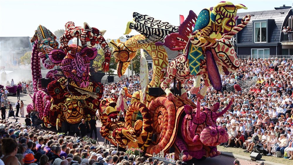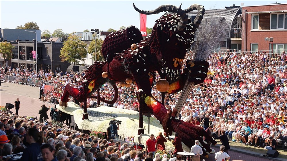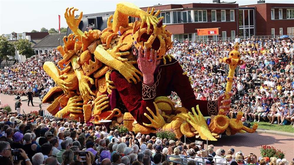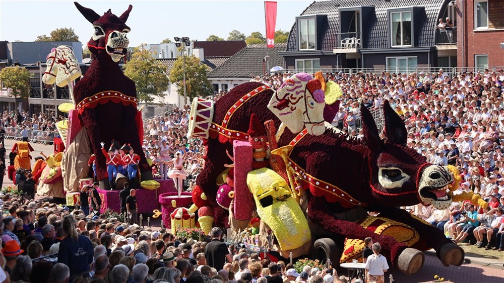 Největší květinové korzo na světě. Žádná malá lokální slavnost – ale gigantické alegorické vozy vysoké až 9 metrů, pokryté miliony jiřin. Každý vůz je originál. Každý tým na něm pracuje celý rok. A atmosféra? Hudba, emoce, soutěž, dav lidí a čistá energie.