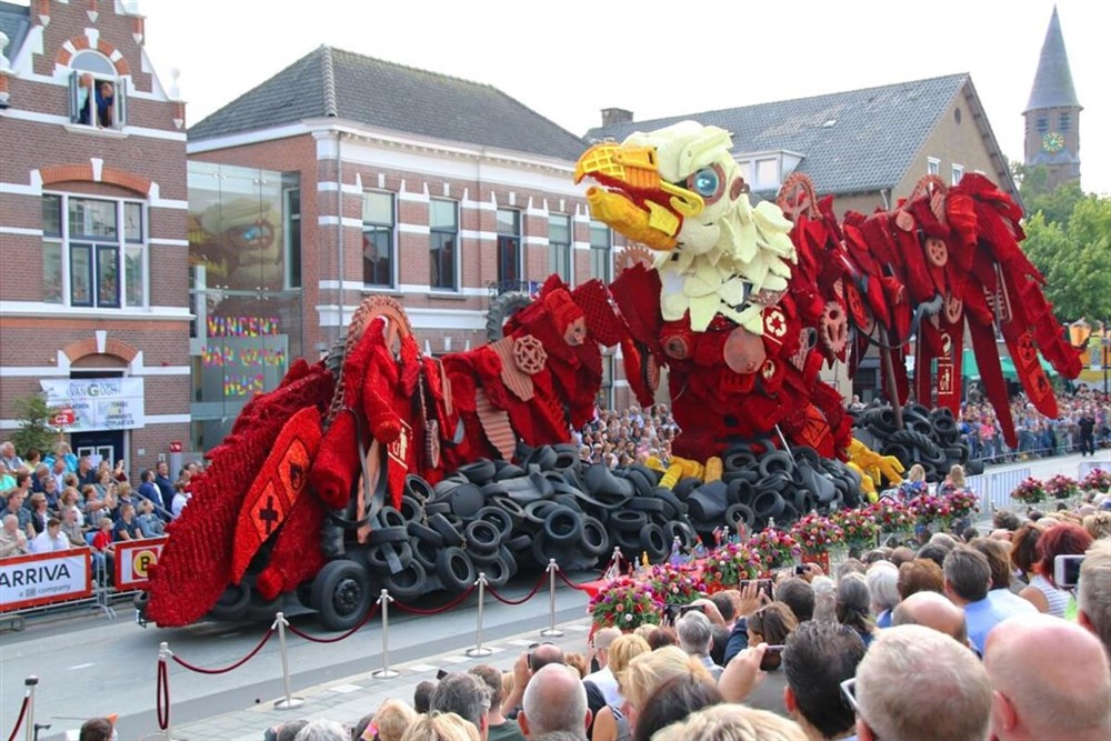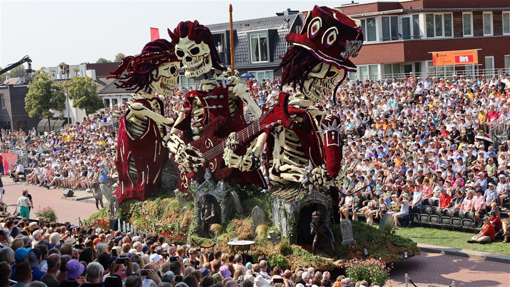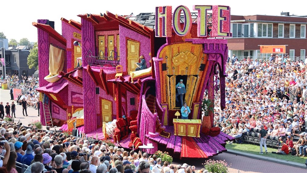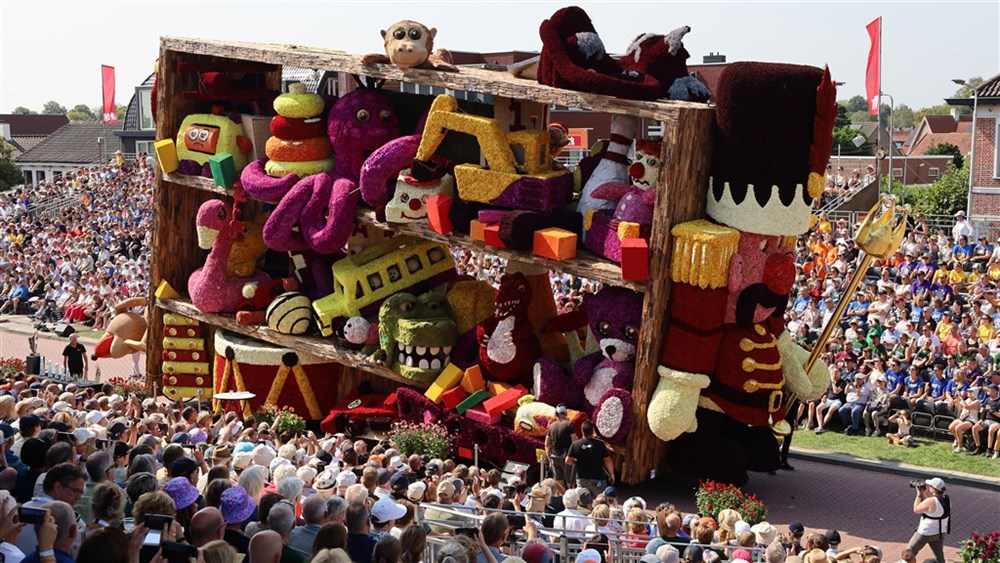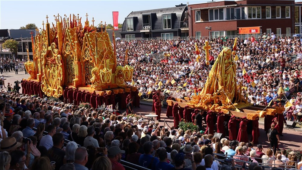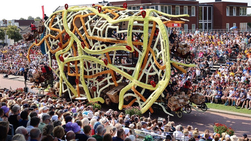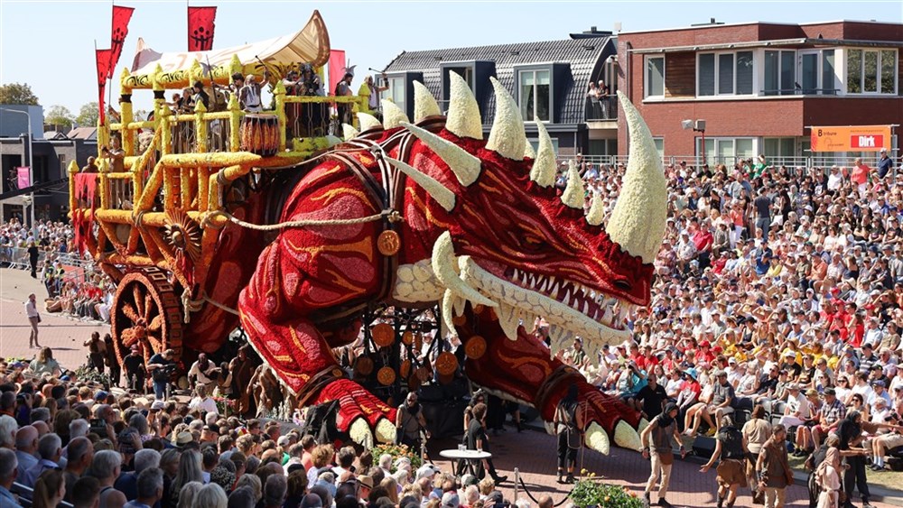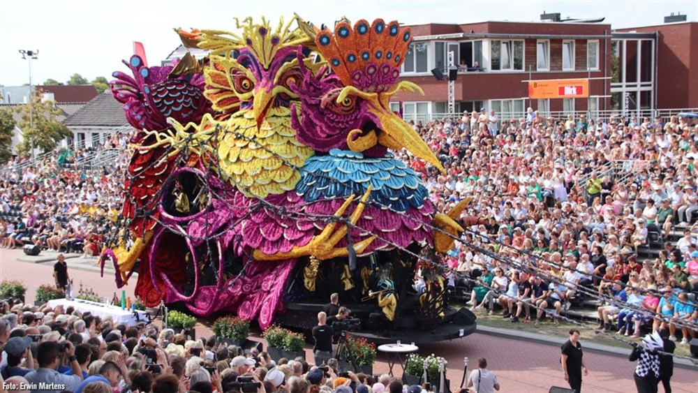 Největší květinové korzo na světě. Žádná malá lokální slavnost – ale gigantické alegorické vozy vysoké až 9 metrů, pokryté miliony jiřin. Každý vůz je originál. Každý tým na něm pracuje celý rok. A atmosféra? Hudba, emoce, soutěž, dav lidí a čistá energie.