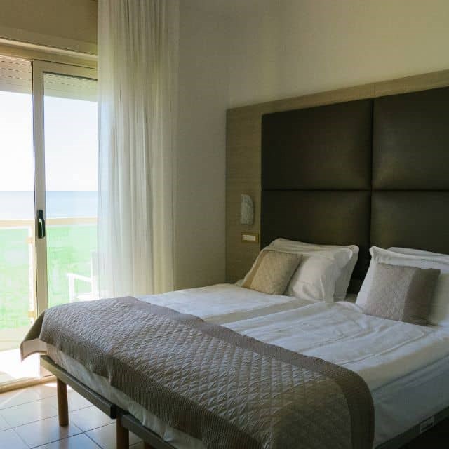 Dvoulůžkový pokoj s balkonem a přímým výhledem na moře.