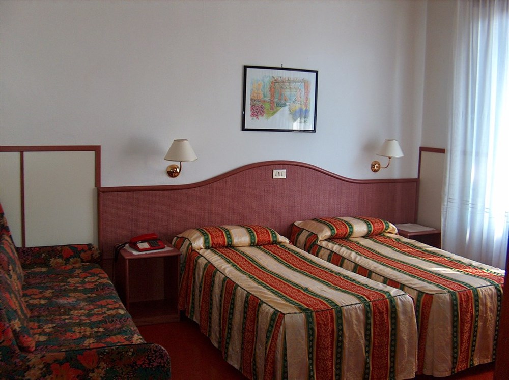 Pokoj Single - Manželská postel, telefon, satTV, vlastní sociální zařízení, fén na vlasy, klimatizace na vyžádání za poplatek 15 euro na noc, trezor za poplatek 25 euro na týden, mini lednička na vyžádání, Wi-Fi připojení, balkon.