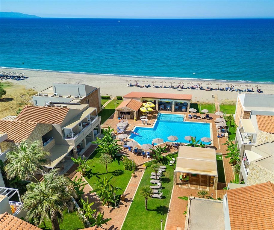 Veřejná písčito-oblázková pláž se nachází cca 10 metrů od hotelu. Pláží Gerani (oceněnou modrou vlajkou).