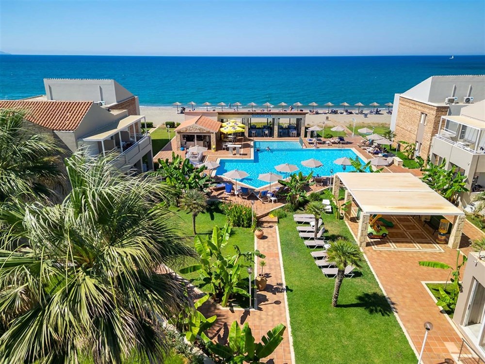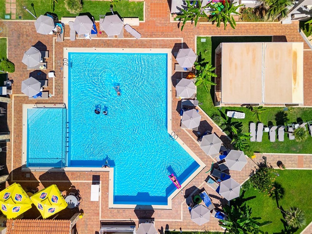 Recepce, bezpečnostní schránka na recepci (na vyžádání), restaurace, snack bar, venkovní bazén, lehátka a slunečníky u bazénu zdarma, dětský bazén, bar u bazénu, a mini market, to vše přímo před slavnou pláží Gerani (oceněnou modrou vlajkou). Wi-Fi připojení ve veřejných prostorách. V blízkosti hotelu jsou obchody a restaurace.